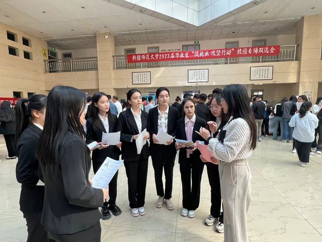 招聘服务是就业工作的重要内容,是促进用人单位和毕业生有效对接的内在需要。金沙官网根据毕业生自身条件、群体特点和个性化需求,分别联合青年政治学院、乌鲁木齐市人力资源和社会保障局、水磨沟区人力资源和社会保障局、水磨沟区教育局、榆树沟街道办事处、榆树沟街道学府社区、乌鲁木齐快聘网共同举办了2场双选会。双选会共有63家用人单位参加,其中参加青年政治学院大专生专场双选会的用人单位共19家,提供了近千个就业岗位;参加温泉校区师范类专场双选会的用人单位共44家,提供就业岗位300余个,旨在帮助2023届本专科毕业生及时把握春招机会,提升人岗匹配效率,尽早尽快落实就业岗位。双选会采取线上、线下同步举行的方式进行,参与线上招聘的人数约11000人(次)。